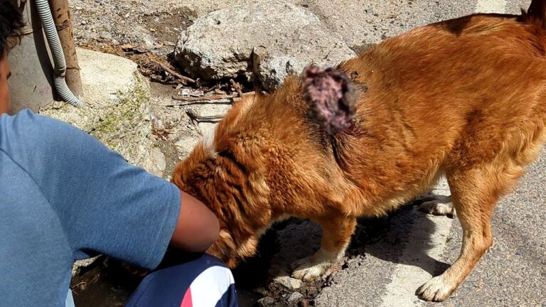 A dog named Apache had a big abscess on his head. Apachi was a friendly and lovable stray, known by the locals as the gentle