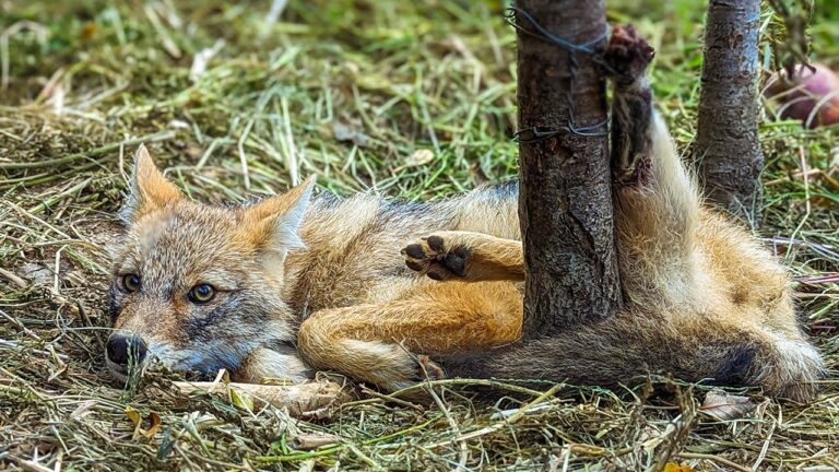 After falling into the hunter’s trap, a fox was spotted with metal wire wrapped around its hind leg.